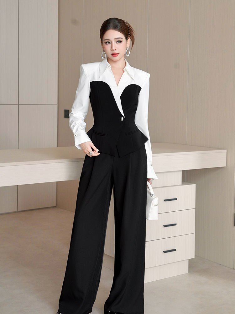 C-4536# 2025秋季新款御姐风气质衬衫领收腰上衣长袖拼接polo衬衣女35232