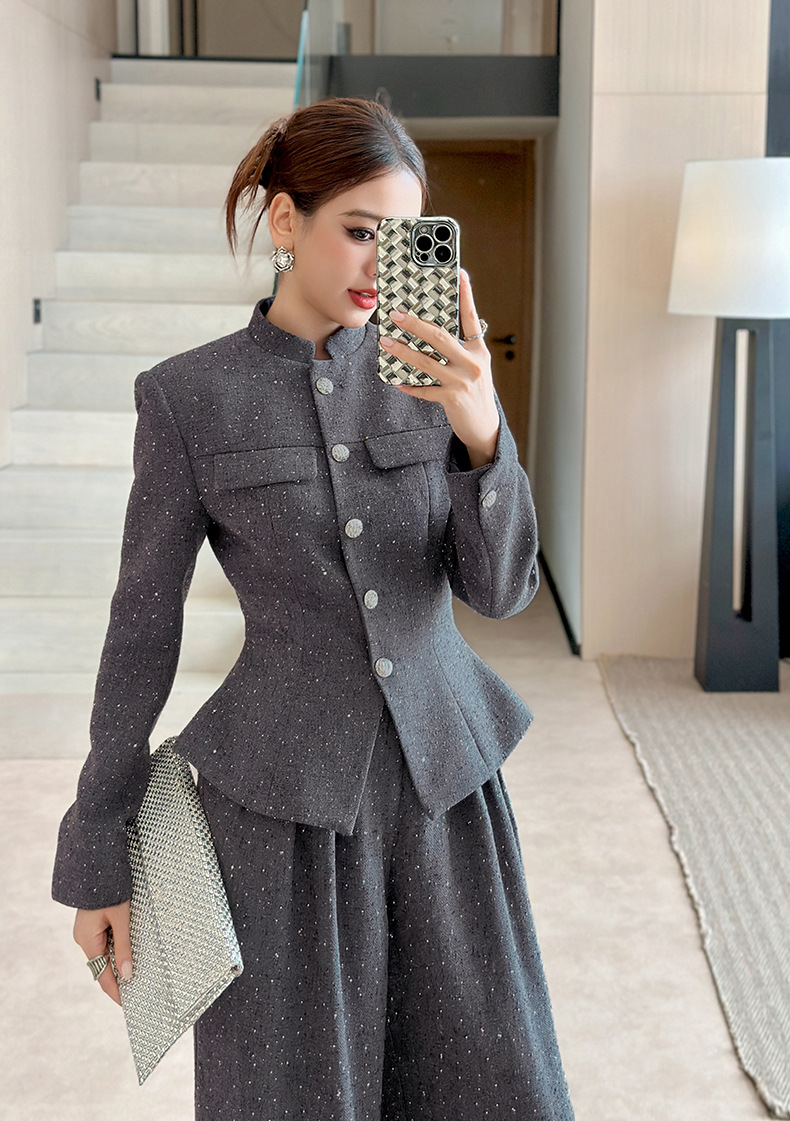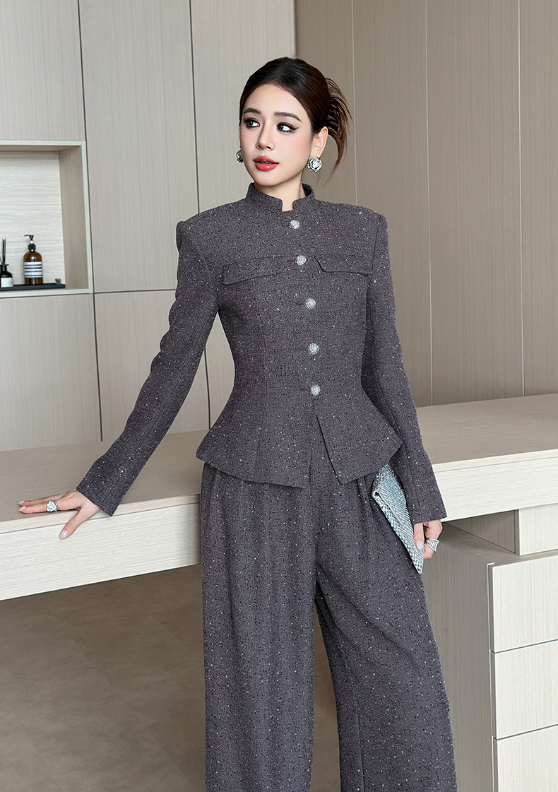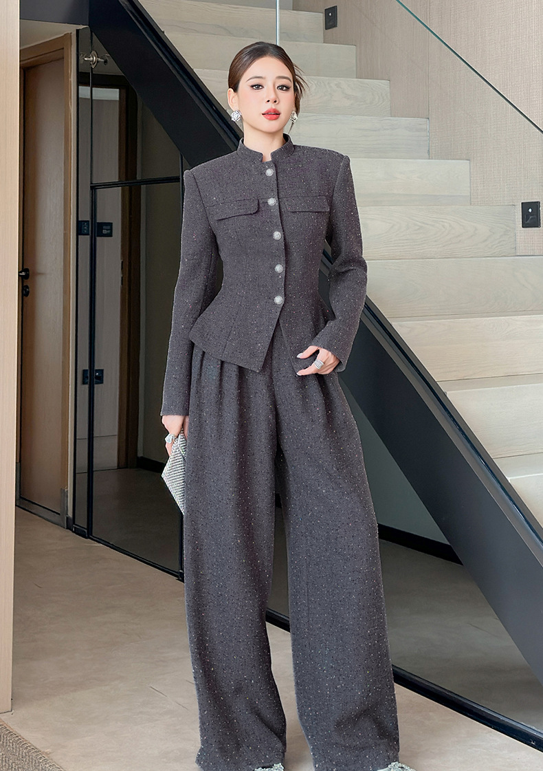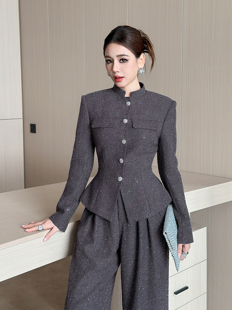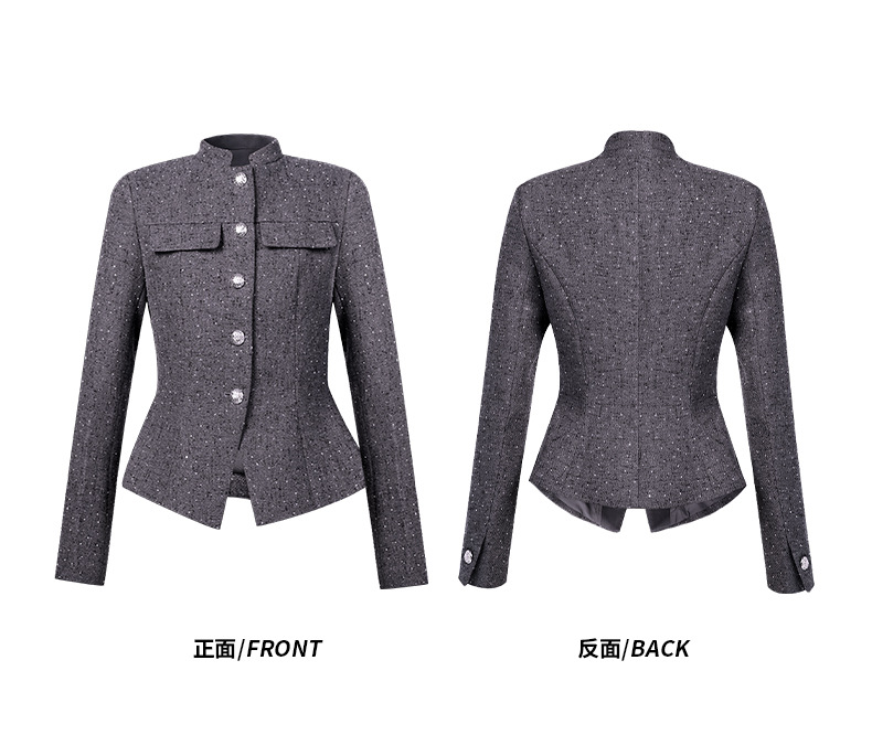 C-4540# 2025秋冬装新款女装单排扣立领修身显瘦上衣时尚洋气中山装35364