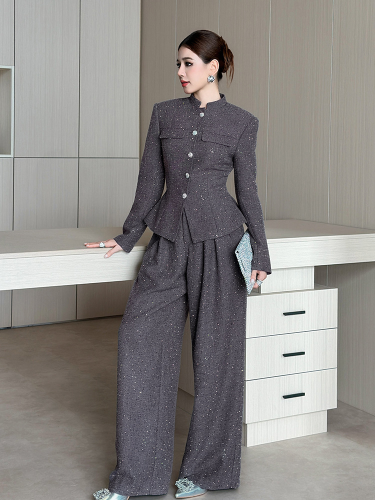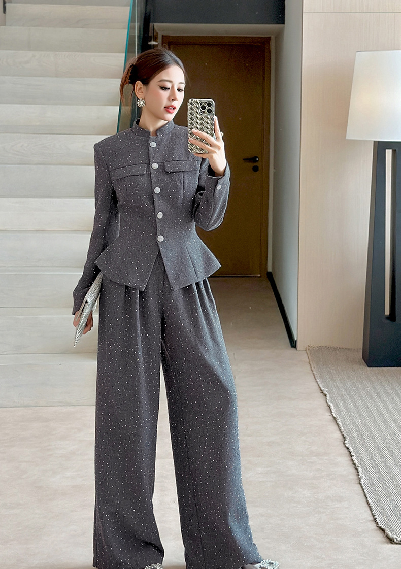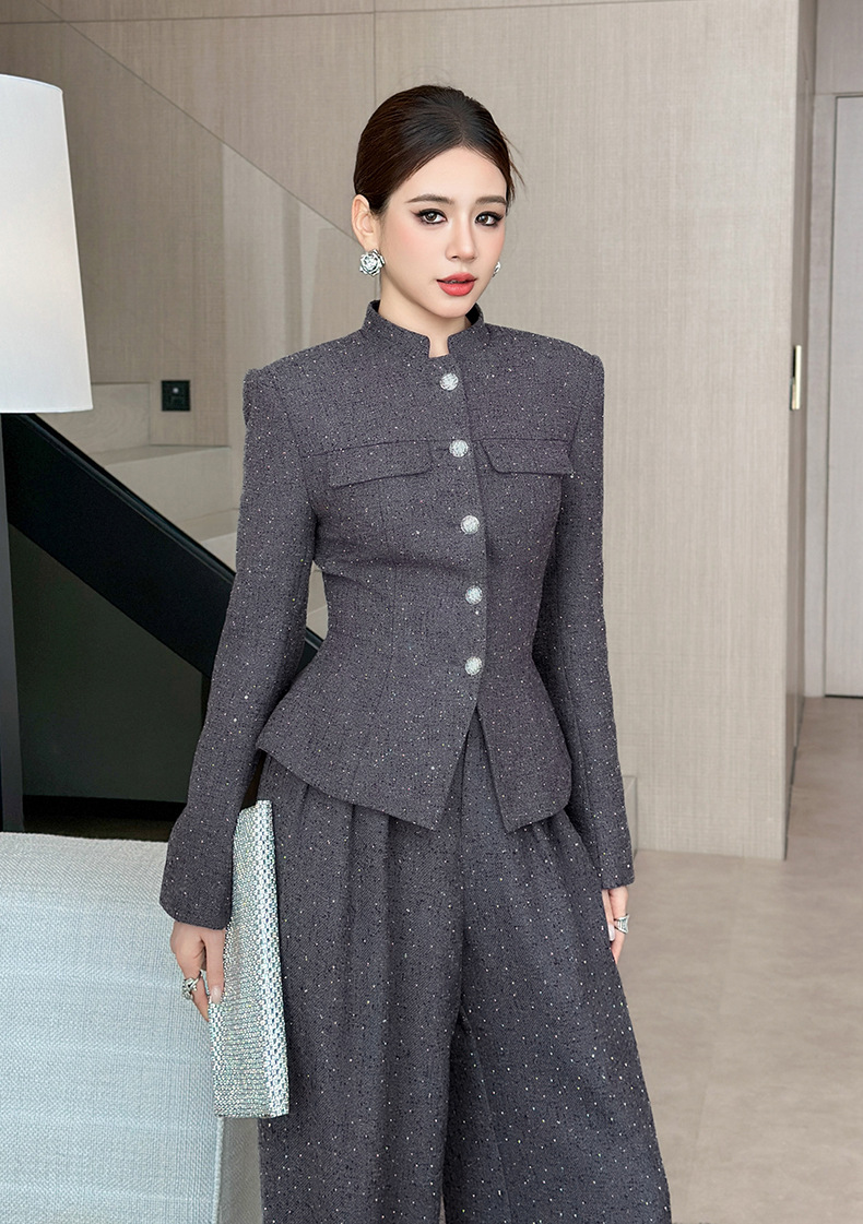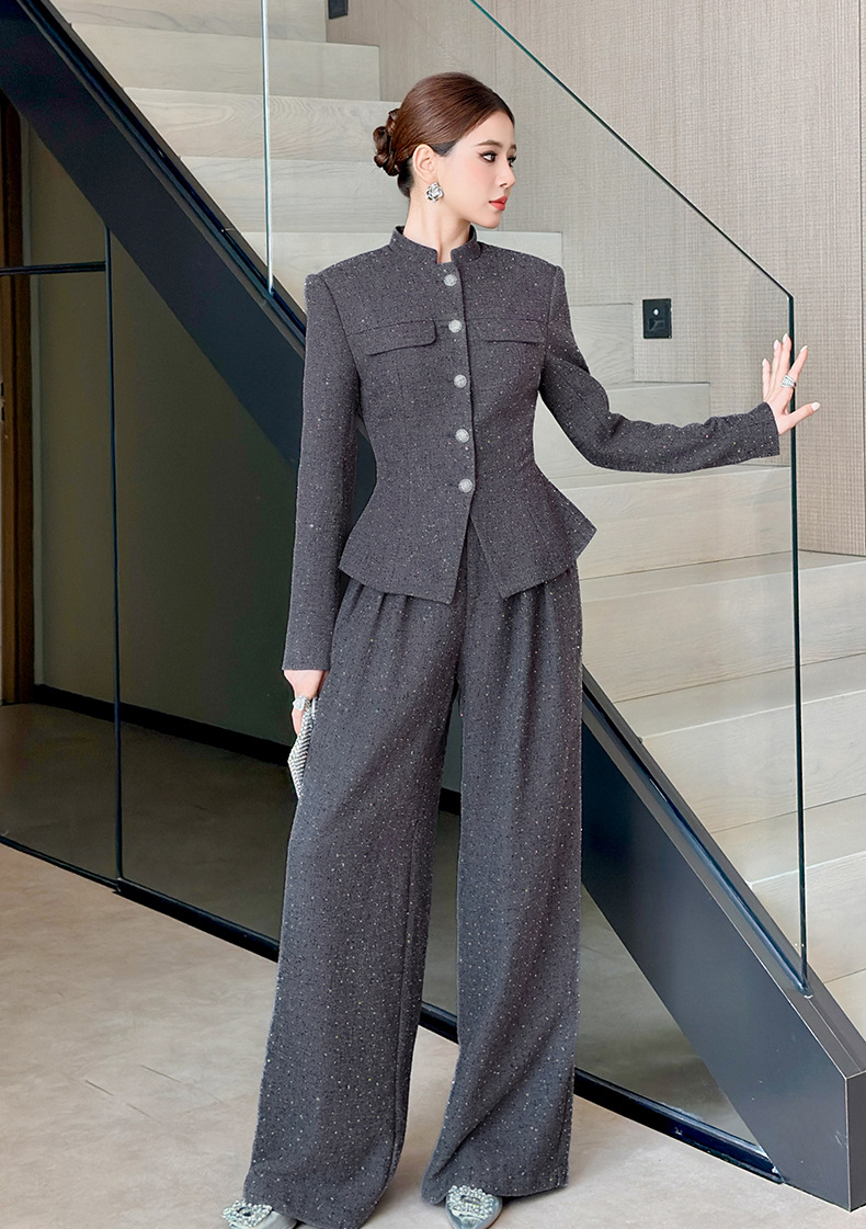 C-4540# 2025秋冬装新款女装单排扣立领修身显瘦上衣时尚洋气中山装35364