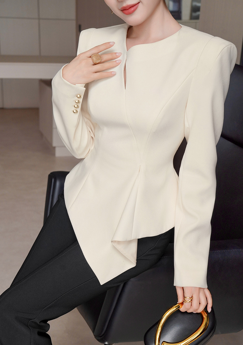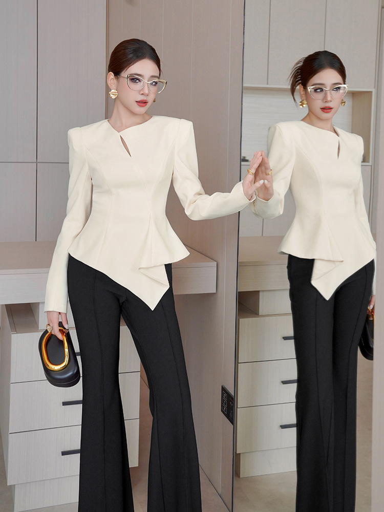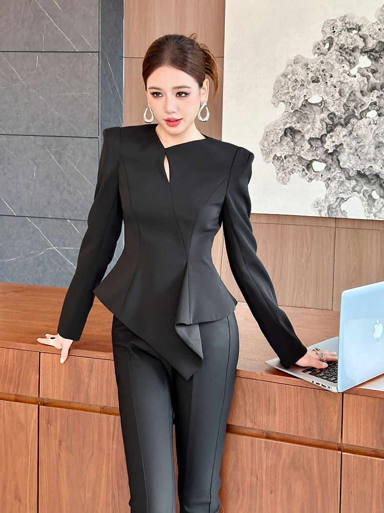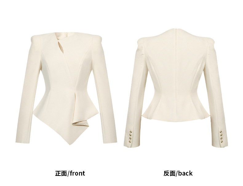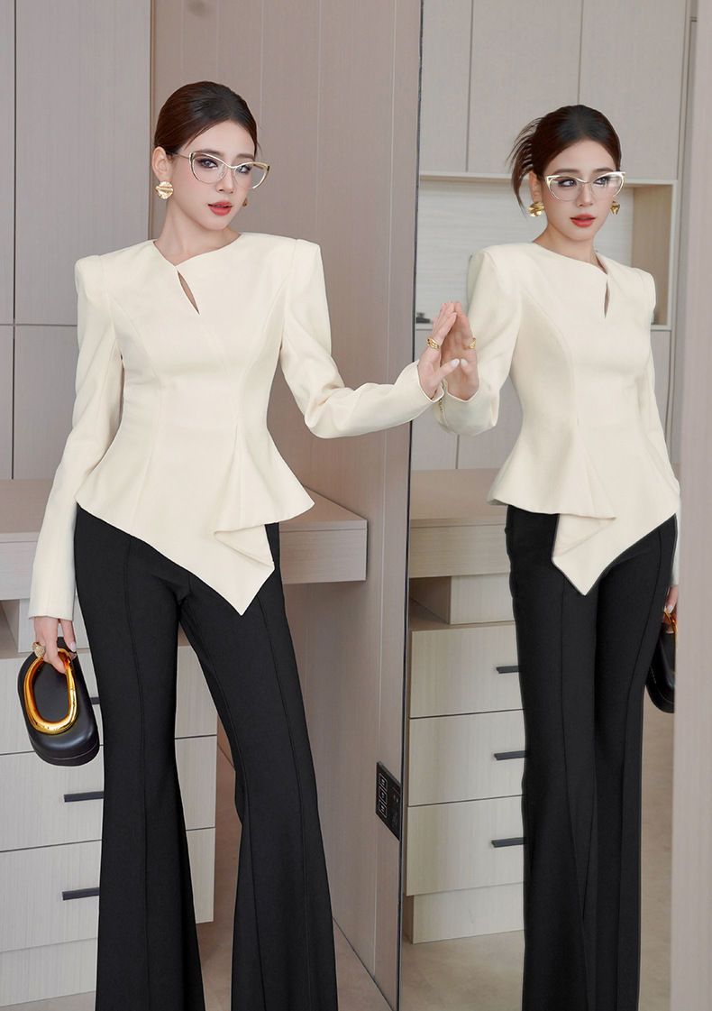 C-4545# 2025秋冬装新款女法式圆领镂空设计感不规则荷叶边收腰上衣35227
