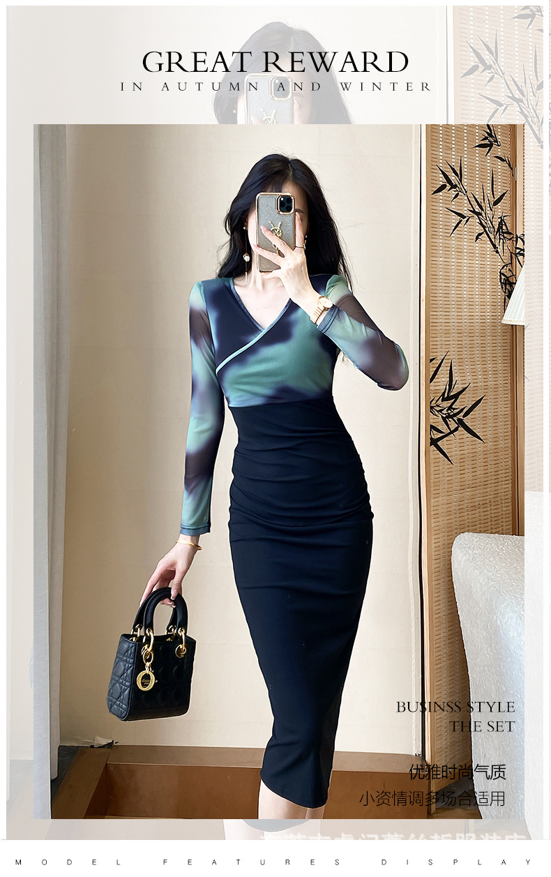 A-8284# 2327秋季气质修身性感连衣裙法式显瘦弹力包臀裙标价不得低于188